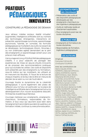 Cet ouvrage est conçu POUR et PAR des pédagogues créatifs. Il a pour objectifs de partager des expériences de mises en oeuvre d’outils innovants et de proposer des recommandations pratiques pour qui souhaite les utiliser. Ces outils et dispositifs sont présentés par des enseignants ou formateurs, ceux-là même qui les mobilisent, les utilisent et en mesurent les résultats. À l’issue de la lecture de chaque chapitre, le lecteur devra être en mesure de décider de se saisir ou non de l’outil décrit.
