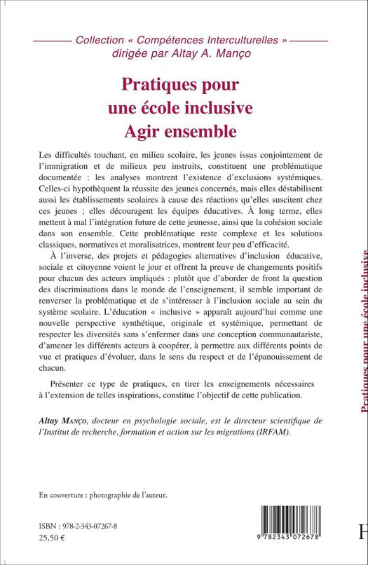 L'éducation "inclusive" apparaît aujourd'hui comme une nouvelle perspective synthétique, originale et systémique, permettant de respecter les diversités sans s'enfermer dans une conception communautariste, d'amener les différents acteurs à coopérer, à permettre aux différents points de vue et pratiques d'évoluer, dans le sens du respect et de l'épanouissement de chacun. Présenter ce type de pratiques, en tirer les enseignements nécessaires à l'extension de telles inspirations, constitue l'objectif de cette publication.