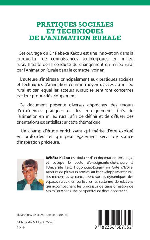 Cet ouvrage du Dr Rébéka Kakou est une innovation dans la production de connaissances sociologiques en milieu rural. Il traite de la conduite du changement en milieu rural par l'Animation Rurale dans le contexte ivoirien. L'auteure s'intéresse principalement aux pratiques sociales et techniques d'animation comme moyen d'accès au milieu rural et par lequel les acteurs ruraux se sentiront concernés par leur propre développement. Ce document présente diverses approches, des retours d'expériences pratiques et des enseignements tirés de l'animation en milieu rural, afin de définir et de diffuser des orientations essentielles sur cette thématique. Un champ d'étude enrichissant, qui mérite d'être exploré en profondeur et qui peut également servir de source d'inspiration précieuse.