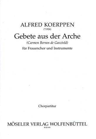 "1955 erschien aus der Hand der französischen Nonne Carmen Bernos de Gaszold ein Gedichtband unter dem Titel "Prières dans l’Arche" – Gebete aus der Arche. Diese Gebete werden den Tieren in den Mund gelegt, die mit Noah, in der drangvollen Enge der Arche vereint, das Ende der Sintflut erwarten. Die Dichterin folgt einer Tradition – man denkt an Äsop, La Fontaine und Goethe – wenn sie im Wesen der Kreaturen Spiegelungen menschlicher Schwächen, Fehler und Tugenden erkennt. Denn die in der Wasserwüste gefangenen Tiere reden so fromm, furchtsam, selbstgerecht und banal, wie es menschlich wäre. Und auch das Allzumenschliche – Hoffart, Leichtsinn, Neid – kommt zu Wort. Nur dass die Ichbefangenheit der betenden Tiere ihrer Unschuld keinen Abbruch tut. Ihre bedingte und bedrängte Natur findet Gedanken, die uns ein sympathisierendes Lächeln abgewinnt. Der Zyklus schien mir zur Vertonung geeignet, weil er ein religiöses Thema unprätentiös und originell vorträgt und ein Stück ermöglicht, das die übliche Trennung zwischen "weltlich" und "geistlich" überschreitet und Konzertsaal und Kirche in Anspruch nehmen kann. Zur Besetzung: Der Frauenchor muss aus den vier üblichen Stimmlagen 1. und 2. Sopran, 1. und 2. Alt bestehen, wobei auch noch Stimmteilungen vorkommen. In Nr. 9 "Gebet der Taube" wird noch ein (aus dem Chor zu bildendes) Soloquartett gebraucht. Der Instrumentalpart besteht aus einer Oboe und einem Streicherquintett (1. und 2. Violine, Viola, Violoncello und Kontrabass). Die Besetzung soll solistisch sein, kann aber bei den Streichern (und wenn die Klangbalance zum Chor dies wünschenswert macht) zu einem kleinen Kammerorchester erweitert werden. Der Charakter der Instrumente, ihre Techniken und Farben, erlauben mir realistische Klangmetaphern und physiognomische Parallelen – so, wenn das Cello im Duett mit dem Alt die hochmütige Giraffe in grossintervalligen Sprüngen deutet, die rasende Geschäftigkeit der Ameise sich in schnellen Violinbariolagen ausdrückt oder die Oboe ein naturalistisches Rabengekrächz hören lässt. Der Zyklus beginnt mit dem Gebet des Noah. Man stelle sich das Gedränge und Geschrei vor, dass die Arche erfüllt, die hochgehenden Wogen, den prasselnden Regen, und mitten darin den Urvater Noah, dem sich der Ausruf entringt: "Herr, was für ein Zirkus!" Seine Ausbrüche korrespondieren mit dem auf- und niederwogenden Streichersatz, bis der Sturm sich legt, die Wogen sich glätten und Noah in der mehrmals gedehnten Phrase "Es dauert lange" seine Ergebung und Hoffnung ausdrückt. Nach dem pharisäischen Gebet der Giraffe ergreift die Schildkröte das Wort. Ihr Instrument ist die Bratsche. Ihre schnaufende Kurzatmigkeit hindert sie, ihr Gebet zusammenhängend zu sprechen. Der fleissigen Ameise – sie erbost sich sehr über die Grille, deren Wirtshausmusik sie unterbricht – folgt der Hahn mit hellen und scharfen Tönen. Er ist es, der die Sonne aufgehen lässt; man kann es in dem sich auffaltenden Klang der Coda hören. Der vergessliche Schmetterling taumelt in immer neu variierten Oboenfiguren durch die gläsernen Sommerklänge von Streicherflageoletts, bis es ihm einfällt, was er sagen wollte: "Amen". Das Schwein bekennt sich zu seiner schnüffelnden und grunzenden Natur, die, von den Streichern mit rauhem Bogendruck gezeichnet, in der Coda durch eine stille F-Dur-Kantilene eine sonderbare Verklärung erfährt. "Vor uns die Sintflut" ruft der Rabe, und sein durchdringender Oboenschrei übertönt das Wogen und Schwanken der Streicher, die hier Motive aus dem "Gebet des Noah" wieder aufnehmen. In der darauf eintretenden Stille bieten die Instrumente verschiedene Themen an, die folgenlos verschwinden – um nach dem Altsolo "Die Arche wartet" sich in einem ruhig-feierlichen a-cappella-Satz mit alternierendem Soloquartett wieder zusammenzufinden und das Werk in reinem Es-Dur beschliessen." Alfred Koerppen