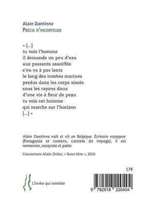 « Précis d’incertitude » est écrit sous le signe du voyage. « Au cœur de l’écriture l’ombre de la main » : La main, instrument du poète, qui retrace dans ce recueil une sorte de résumé de sa vie : d’abord l’adolescence et ses marges incertaines ; puis les voyages, « errances » qui élargissent l’homme où il tente de « retrouver les sentiers/ instables de la beauté » ; puis la contemplation de la beauté à travers la peinture, ici celle d’Edvard Munch ; enfin, des poèmes dédiés à ceux qui comme lui sont restés en marge, à rechercher « cette paroisse/ de l’enfance éblouie ».