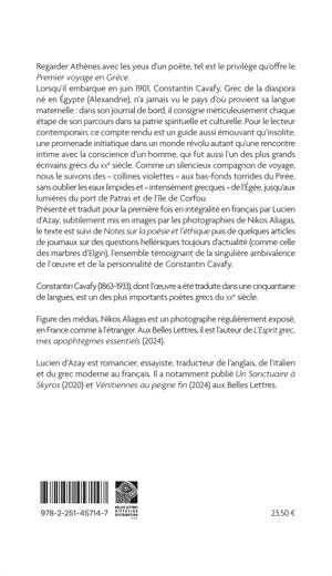Lorsqu’il embarque en juin 1901, Constantin Cavafy, Grec de la diaspora né en Égypte (Alexandrie), n’a jamais vu le pays d’où provient sa langue maternelle : dans son journal de bord, il consigne méticuleusement chaque étape de son parcours dans sa patrie spirituelle et culturelle. Pour le lecteur contemporain, ce compte rendu est un guide aussi émouvant qu’insolite, une promenade initiatique dans un monde révolu autant qu’une rencontre intime avec la conscience d’un homme, qui fut aussi l’un des plus grands écrivains grecs du XXe siècle. Comme un silencieux compagnon de voyage, nous le suivons des « collines violettes » aux bas-fonds torrides du Pirée, sans oublier les eaux limpides et « intensément grecques » de l’Égée, jusqu’aux lumières du port de Patras et de l’île de Corfou.