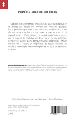 C'est par-delà une méthode phénoménologique qui fait prévaloir la visibilité aux dépens de l'invisible que surgissent quelques lueurs philosophiques nées d'une intention consciente de voir (ou d'entendre) sans se fixer comme projet de maîtriser tout ce qui apparaît, mais en désirant trouver de multiples cohérences dans ce qui est dispersé. En effet chacune de ces lueurs est une promesse de nouvelles aurores qui ne demeurent jamais séparées de l'infinité obscure de la Nature, en empêchant de réduire l'invisible au visible, la sérénité silencieuse de la pensée aux seuls bruissements terrestres…