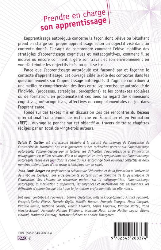 L'apprentissage autorégulé concerne la façon dont l'élève ou l'étudiant prend en charge son propre apprentissage selon un objectif visé dans un contexte donné. Il s'agit de comprendre comment l'élève mobilise des stratégies d'apprentissage cognitives et métacognitives, comment il se motive ou encore comment il gère son travail et son environnement en vue d'atteindre les objectifs fixés ou qu'il se fixe. Parce que l'apprentissage autorégulé est façonné par et façonne le contexte d'apprentissage, cet ouvrage cible le rôle des contextes dans les questionnements sur l'apprentissage autorégulé.