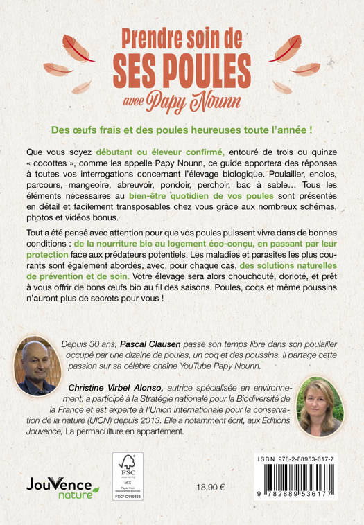 Les maladies et parasites les plus courants sont également abordés, avec, pour chaque cas, des solutions naturelles de prévention et de soin. Votre élevage sera alors chouchouté, dorloté, et prêt à vous offrir de bons œufs bio au fil des saisons. Poules, coqs et même poussins n’auront plus de secrets pour vous !