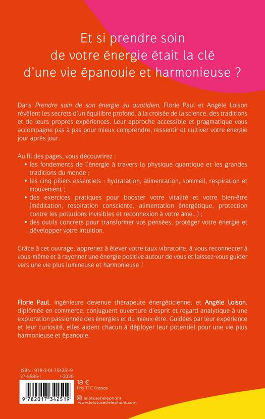 Dans Prendre soin de son énergie au quotidien, Florie Paul et Angèle Loison révèlent les secrets d’un équilibre profond, à la croisée de la science, des traditions et de leurs propres expériences. Leur approche accessible et pragmatique vous accompagne pas à pas pour mieux comprendre, ressentir et cultiver votre énergie jour après jour.