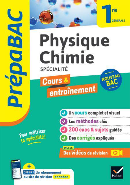 Un outil de travail complet et efficace, conforme au programme de Physique-chimie en 1re générale (enseignement de spécialité). Dans chaque chapitre : le cours, les méthodes clés, des exercices et sujets corrigés. Pour vous accompagner tout au long de votre Première et vous aider à avoir un bon dossier ParcourSup.