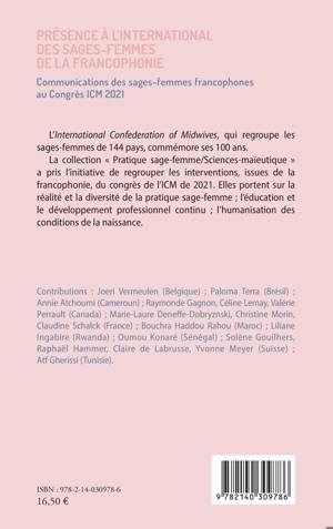 L'International Confederation of Midwives, qui regroupe les sages-femmes de 144 pays, commémore ses 100 ans. La collection Pratique sage-femme/Sciences-maïeutique a pris l'initiative de regrouper les interventions, issues de la francophonie, du congrès de l'ICM de 2021. Elles portent sur la réalité et la diversité de la pratique sage-femme; l'éducation et le développement professionnel continu; l'humanisation des conditions de la naissance.