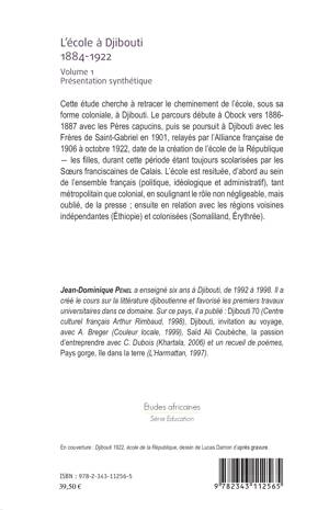 Cette étude cherche à retracer le cheminement de l'école, sous sa forme coloniale, à Djibouti. Le parcours débute à Obock vers 1886 - 1887 avec les Pères capucins, puis se poursuit à Djibouti avec les Frères de Saint - Gabriel en 1901, relayés par l'Alliance française de 1906 à octobre 1922, date de la création de l'école de la République - les filles, durant cette période étant toujours scolarisées par les Soeurs franciscaines de Calais. L'école est resituée, d'abord au sein de l'ensemble français tant métropolitain que colonial, en soulignant le rôle de la presse ; ensuite en relation avec les régions voisines indépendantes (Ethiopie) et colonisées (Somaliland, Erythrée)