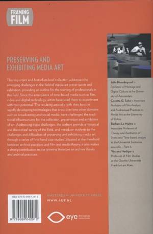 This important and first-of-its-kind collection addresses the emerging challenges in the field of media art preservation and exhibition, providing an outline for the training of professionals in this field. Since the emergence of time-based media such as film, video and digital technology, artists have used them to experiment with their potential. The resulting artworks, with their basis in rapidly developing technologies that cross over into other domains such as broadcasting and social media, have challenged the traditional infrastructures for the collection, preservation and exhibition of art. Addressing these challenges, the authors provide a historical and theoretical survey of the field, and introduce students to the challenges and difficulties of preserving and exhibiting media art through a series of first-hand case studies. Situated at the threshold between archival practices and film and media theory, it also makes a strong contribution to the growing literature on archive theory and archival practices.