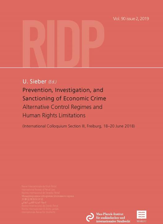 This issue is part of the fourth milestone on the way to the 20th AIDP World Congress dedicated to ‘Criminal Justice and Corporate Business’. It contains the reports on alternative regimes for controlling economic crime and the limits of human rights protection for the International Colloquium for Section III on ‘Prevention, Investigation, and Sanctioning of Economic Crime’, organized by the Max Planck Institute for Foreign and International Criminal Law in Freiburg from 18 to 20 June 2018. The present issue is published simultaneously with issue 1 of Volume 90, featuring an introduction and a selection of national reports. The publication of the general report and the recommendations of the colloquium will follow.