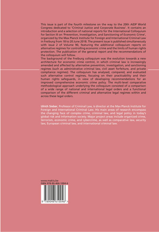 This issue is part of the fourth milestone on the way to the 20th AIDP World Congress dedicated to ‘Criminal Justice and Corporate Business’. It contains an introduction and a selection of national reports for the International Colloquium for Section III on ‘Prevention, Investigation, and Sanctioning of Economic Crime’, organized by the Max Planck Institute for Foreign and International Criminal Law in Freiburg from 18 to 20 June 2018. The present issue is published simultaneously with issue 2 of Volume 90, featuring the additional colloquium reports on alternative regimes for controlling economic crime and the limits of human rights protection. The publication of the general report and the recommendations of the colloquium will follow. The background of the Freiburg colloquium was the evolution towards a new architecture for economic crime control, in which criminal law is increasingly amended and affected by alternative prevention, investigation, and sanctioning regimes (such as administrative criminal law, civil asset forfeiture, and private compliance regimes). The colloquium has analysed, compared, and evaluated such alternative control regimes, focusing on their practicability and their human rights safeguards, in view of developing recommendations for an improved comprehensive economic crime policy. The multi-level comparative methodological approach underlying the colloquium consisted of a comparison of a wide range of national and international legal orders and a functional comparison of the different criminal and alternative legal regimes within and across these legal orders.