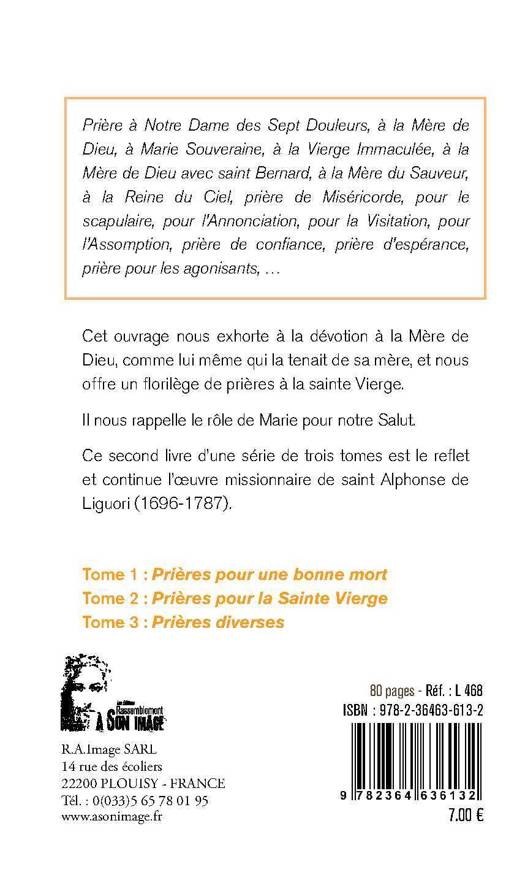 Ces recueils de prières de saint Alphonse de Liguori (1696-1787 - Docteur de l'Église) présentent un secours spirituel et temporel pour toutes les circonstances de la vie. Le premier vise à nous faire craindre le jugement de Dieu et nous encourage à demander sans tarder la grâce de la persévérance pour nous préparer à la mort en demeurant dans l'amour de Dieu. Le second nous fait partager la grande dévotion de saint Alphonse à la Sainte Vierge et le troisième nous offre une assistance dans les épreuves que nous sommes amenés à traverser, conformément eu désir de saint Alphonse d'évangéliser le plus grand nombre.