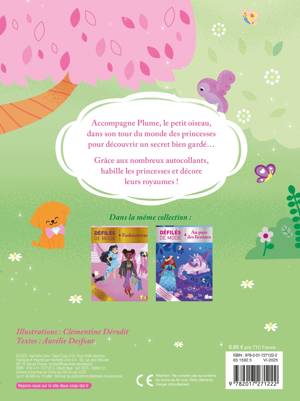 Accompagne Plume, le petit oiseau, dans son tour du monde des princesses pour découvrir un secret bien gardé... Grâce aux nombreux autocollants, habille les princesses et décore leurs royaumes !
