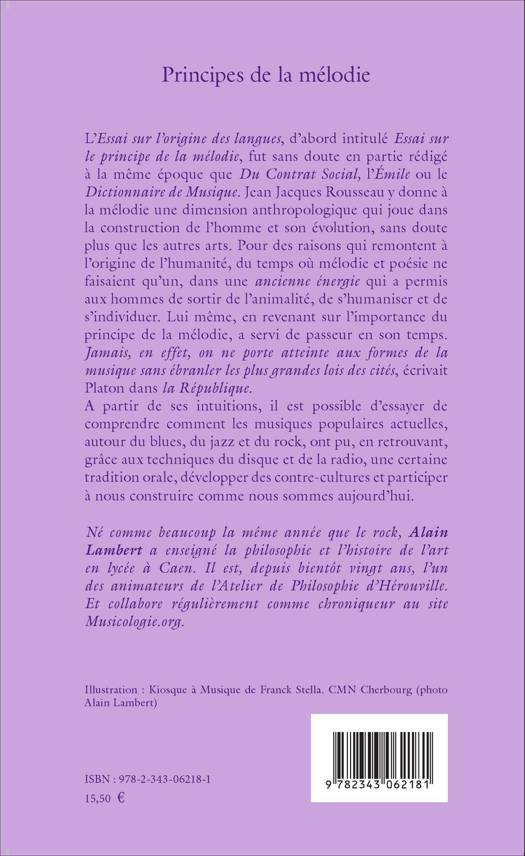 Dans l'Essai sur l'origine des langues, d'abord intitulé Essai sur le principe de la mélodie, J.-J. Rousseau donne au concept de mélodie une dimension anthropologique qui permet de mieux comprendre l'évolution des musiques populaires, surtout depuis la Révolution française. Et comment les musiques actuelles, autour du blues, du jazz et du rock, ont pu, en retrouvant, grâce aux techniques du disque et de la radio, une certaine tradition orale, favoriser des contre-cultures et participer à nous construire comme nous sommes aujourd'hui.