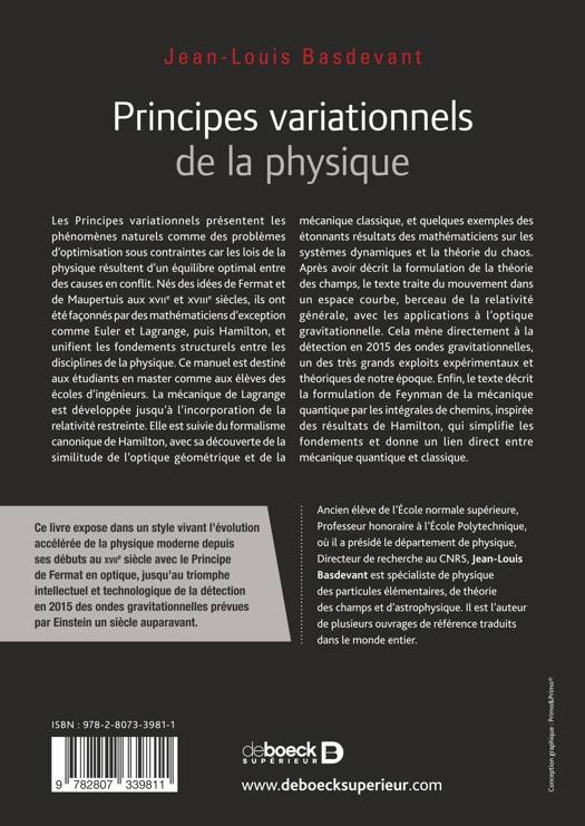 Présents dans tous les domaines de la recherche en physique, les principes variationnels ont la double caractéristique d'être universels et de montrer que leurs lois peuvent être énoncées comme résultant de « situations d'équilibre optimales » entre causes en conflit. Ils présentent les phénomènes naturels comme des problèmes d'optimisation sous contraintes (ex. le principe de monde action). Ils ont produitdes résultats physiques de plus en plus riches dont beaucoup sont à la base de la physique et de l’astrophysique contemporaine.