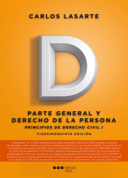 Son varias las razones que permiten enjuiciar admirativamente la obra del profesor Lasarte que inicia su andadura con este primer tomo dedicado, básicamente, al Derecho de la persona y a la tradicionalmente denominada "Parte General" del Derecho civil. La primera de ellas, probablemente, radique en su vibrante y atractiva prosa, que carece de parangón en obras de similar naturaleza. A ella se suman sin duda su magnífica información bibliográfica y jurisprudencial, la riqueza de contenidos y de aspectos reflexivos y su excelente actualización.