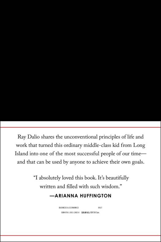 #1 NEW YORK TIMES BESTSELLER * 5 MILLION COPIES SOLD "Significant...The book is both instructive and surprisingly moving." --The New York Times Ray Dalio, one of the world's most successful investors and entrepreneurs, shares the unconventional principles that he's developed, refined, and used over the past forty years to create unique results in both life and business--and which any person or organization can adopt to help achieve their goals. In 1975, Ray Dalio founded an investment firm, Bridgewater Associates, out of his two-bedroom apartment in New York City. Forty years later, Bridgewater has made more money for its clients than any other hedge fund in history and grown into the fifth most important private company in the United States, according to