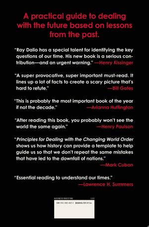 In this remarkable and timely addition to his Principles series, Dalio brings readers along for his study of the major empires--including the Dutch, the British, and the American--putting into perspective the "Big Cycle" that has driven the successes and failures of all the world's major countries throughout history. He reveals the timeless and universal forces behind these shifts and uses them to look into the future, offering practical principles for positioning oneself for what's ahead.