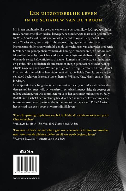 Tegendraads, spiritueel, hartstochtelijk: in de verrassende biografie Prins Charles laat Sally Bedell Smith de ware Charles zien, met al zijn ambities, overtuigingen en onzekerheden. De auteur voert ons door zijn eenzame kinderjaren en moeilijke middelbareschooltijd. Bedell Smith beschrijft onomwonden de vele liefdesaffaires, en we maken kennis met Charles' intellectuele passies, zijn activiteiten als ondernemer en spirituele zoektocht. Dit is de eerste gezaghebbende biografie dat een ander licht werpt op de dood van Diana, het huwelijk met Camilla en de voorbereidingen op de troon. Op basis van uitgebreid onderzoek en honderden exclusieve interviews schets Bedell Smith een veelzijdig beeld van een man wiens leven complexer, tragischer maar ook opwindender is dan we tot nu toe wisten.