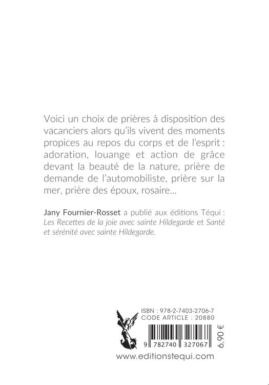 Voici un choix de prières à la disposition des vacanciers pour répondre à toutes sortes de situations : adoration, louange et action de grâce devant la beauté de la nature, mais aussi appel de détresse, demande de pardon... En feuilletant ces pages, le lecteur découvrira les prières qui lui conviendront le mieux pour exposer à Dieu ses demandes alors qu’il vit un moment propice au repos du corps et de l’esprit mais aussi où le coeur est plus disponible à Dieu.