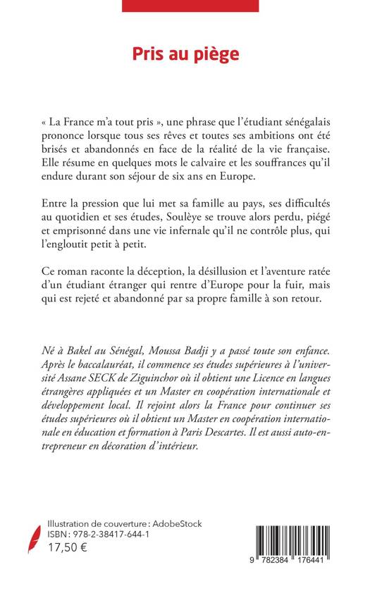La France m'a tout pris, une phrase que l'étudiant sénégalais prononce lorsque tous ses rêves et toutes ses ambitions ont été brisés et abandonnés en face de la réalité de la vie française. Elle résume en quelques mots le calvaire et les souffrances qu'il endure durant son séjour de six ans en Europe. Entre la pression que lui met sa famille au pays, ses difficultés au quotidien et ses études, Soulèye se trouve alors perdu, piégé et emprisonné dans une vie infernale qu'il ne contrôle plus, qui l'engloutit petit à petit. Ce roman raconte la déception, la désillusion et l'aventure ratée d'un étudiant étranger qui rentre d'Europe pour la fuir, mais qui est rejeté et abandonné par sa propre famille à son retour. Né à Bakel au Sénégal, Moussa Badji y a passé toute son enfance. Après le baccalauréat, il commence ses études supérieures à l'université Assane SECK de Ziguinchor où il obtient une Licence en langues étrangères appliquées et un Master en coopération internationale et développement local. Il rejoint alors la France pour continuer ses études supérieures où il obtient un Master en coopération internationale en éducation et formation à Paris Descartes. Il est aussi auto-entrepreneur en décoration d'intérieur.