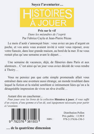 Le mois d'août s'annonçait bien : vous aviez un peu d'argent en poche, et vos amis vous avaient invité à venir vous reposer, avec votre fiancée, dans leur grande maison, au bord de la mer. Il ne vous restait plus qu'une semaine avant le départ... <br /><br /> Une semaine de vacances, déjà, de flâneries dans Paris et aux alentours... C'est ainsi qu'un jour vous aviez décidé de vous rendre à Thoiry...<br /><br /> Vous ne pensiez pas que cette simple promenade allait vous entraîner dans une aventure aussi étrange, un monde troublant dans lequel la fiction et la réalité semblent si intimement liées qu'on a la désagréable impression de vivre un rêve éveillé... <br /><br /> Autant dire un cauchemar...