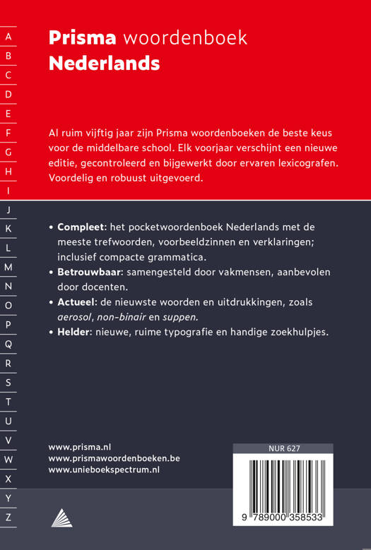 Al ruim 50 jaar worden de Prisma woordenboeken samengesteld, bijgewerkt en gecontroleerd door een team van ervaren lexicografen. Ook deze nieuwe editie is van A tot Z overzichtelijk, robuust uitgevoerd en voordelig.