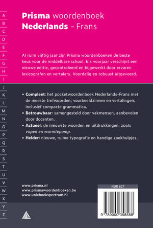 Al ruim 50 jaar worden de Prisma woordenboeken samengesteld, bijgewerkt en gecontroleerd door een team van ervaren lexicografen. Ook deze nieuwe editie is van A tot Z overzichtelijk, robuust uitgevoerd en voordelig.