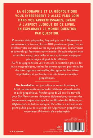 Prisonniers de la géographie, le grand quiz met à l'épreuve vos connaissances à travers plusde 300 questions et jeux, tout en éveillant votre curiosité sur les enjeux politiques, économiques et culturels qui façonnent notre monde. Un quiz exigeant mais accessible, conçu pour celles et ceux qui aiment conjuguer plaisir du jeu et goût de la réflexion.