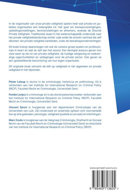 Dit originele boek verruimt de blik op veiligheid in het algemeen en private veiligheid in het bijzonder. Pieter Leloup is doctor in de criminologie, historicus en politicoloog. Hij is verbonden aan het Institute for International Research on Criminal Policy (