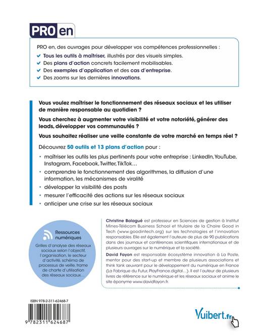 YouTube, Facebook, Twitter, LinkedIn, Instagram, Tik Tok, Twitch : toutes les dernières fonctionnalités des médias sociaux sont couvertes ainsi que leurs stratégies d’utilisation décrites selon l’organisation et les métiers concernés (community manager, webmestre, DPO, etc.).