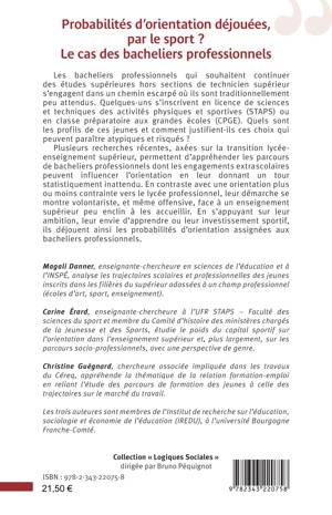 Les bacheliers professionnels qui souhaitent continuer des études supérieures hors sections de technicien supérieur s’engagent dans un chemin escarpé où ils sont traditionnellement peu attendus. Quelques-uns s’inscrivent en licence de sciences et techniques des activités physiques et sportives (STAPS) ou en classe préparatoire aux grandes écoles (CPGE). Quels sont les profils de ces jeunes et comment justifient-ils ces choix qui peuvent paraître atypiques et risqués ? Plusieurs recherches récentes, axées sur la transition lycée enseignement supérieur, permettent d’appréhender les parcours de bacheliers professionnels dont les engagements extrascolaires peuvent influencer l’orientation en leur donnant un tour statistiquement inattendu.