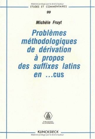 La richesse du latin en materiel suffixal fait de cette langue une remarquable illustration de la derivation suffixale en general, l'un des procedes fondamentaux de la formation des mots, particulierement dans les langues indo-europeennes. Cette etude des suffixes latins en ...cus, encore representes dans les langues romanes, applique pour la premiere fois au latin certaines methodes de la linguistique generale. Elle recourt a une definition de la fonction suffixale en un continuum entre deux poles, syntaxique et semantique, et etablit une gradation dans les etapes de la motivation et de la productivite. La synchronie et la diachronie y sont traitees comme complementaires: aussi tous les mots en ...cus attestes a la periode republicaine sont-ils egalement examines du point de vue de leur histoire, ce qui permet de degager plusieurs suffixes anciens la ou l'on supposait une origine unique. On etablit l'existence de formations anciennes, devenues parfois meconnaissables en latin, et, a la lumiere de l'ensemble du materiel, on propose des etymologies nouvelles pour des termes jusqu'ici consideres comme obscurs.