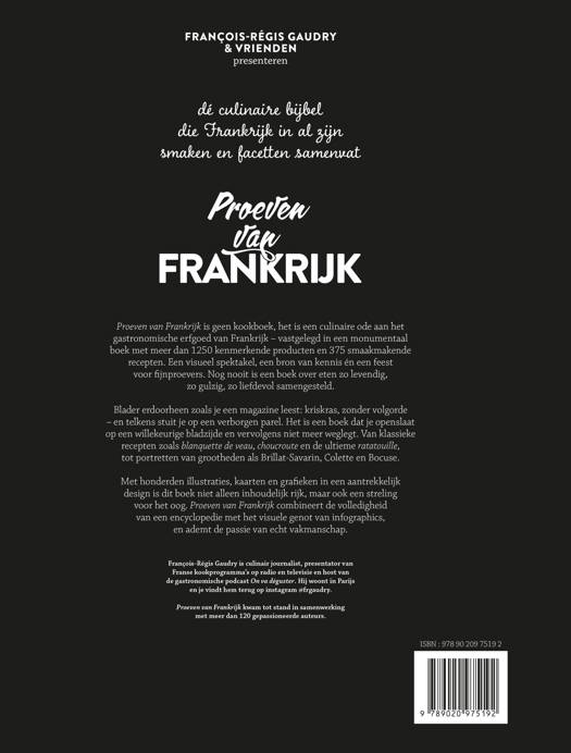 Proeven van Frankrijk is geen kookboek, het is een culinaire ode aan het gastronomische erfgoed van Frankrijk - vastgelegd in een monumentaal boek met meer dan 1250 kenmerkende producten en 375 smaakmakende recepten. Een visueel spektakel, een bron van kennis én een feest voor fijnproevers. Nog nooit is een boek over eten zo levendig, zo gulzig, zo liefdevol samengesteld.