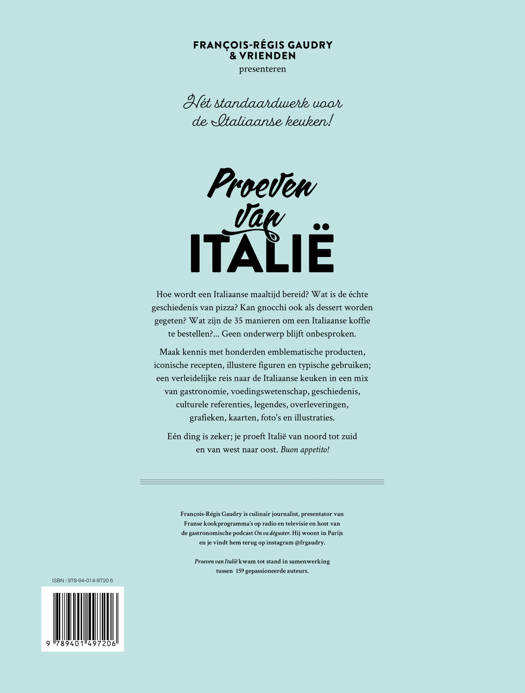 Maak kennis met honderden emblematische producten, iconische recepten, illustere figuren en typische gebruiken; een verleidelijke reis naar de Italiaanse keuken in een mix van gastronomie, voedingswetenschap, geschiedenis, culturele referenties, legendes, overleveringen, grafieken, kaarten, foto's en illustraties. Eén ding is zeker; je proeft Italië van noord tot zuiden van west naar oost. Buon appetito!