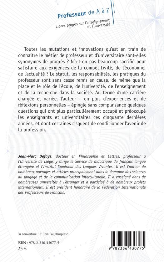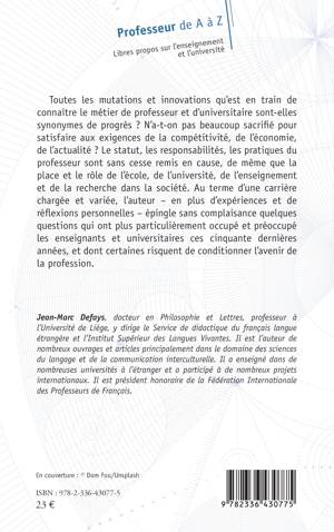 Toutes les mutations et innovations qu’est en train de connaître le métier de professeur et d’universitaire sont-elles synonymes de progrès ? N’a-t-on pas beaucoup sacrifié pour satisfaire aux exigences de la compétitivité, de l’économie, de l’actualité ? Le statut, les responsabilités, les pratiques du professeur sont sans cesse remis en cause, de même que la place et le rôle de l’école, de l’université, de l’enseignement et de la recherche dans la société. Au terme d’une carrière chargée et variée, l’auteur – en plus d’expériences et de réflexions personnelles – épingle sans complaisance quelques questions qui ont plus particulièrement occupé et préoccupé les enseignants et universitaires ces cinquante dernières années, et dont certaines risquent de conditionner l’avenir de la profession.