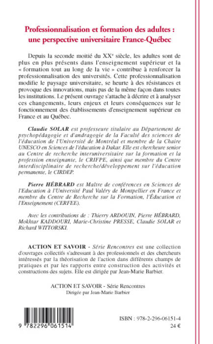 Professionnalisation et formation des adultes, une perspective universitaire France-Québec