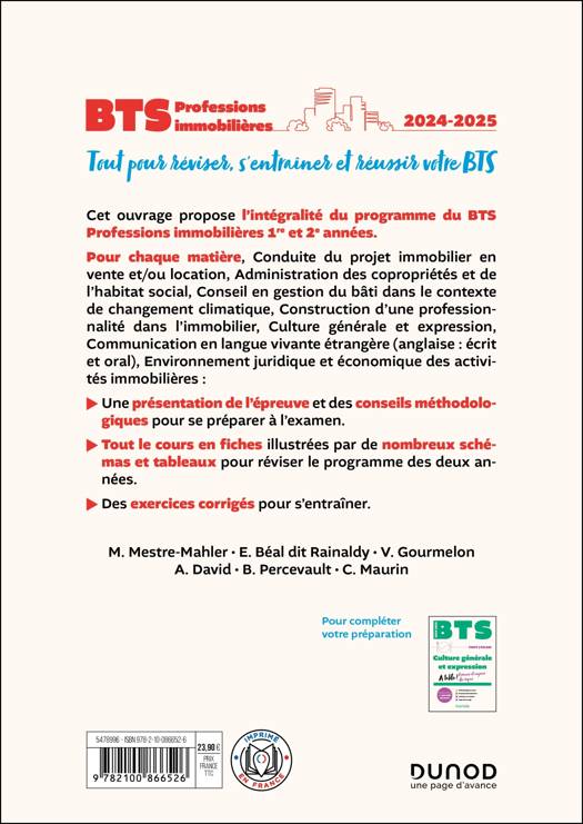 l’intégralité du programme du BTS Professions immobilières 1re et 2e années.