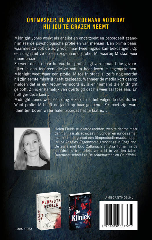 Midnight werkt als analist en onderzoekt en beoordeelt geanonimiseerde psychologische profielen van mensen. Een prima baan, waarmee ze ook de zorg voor haar tweelingzus kan bekostigen. Op een dag stuit ze op een zogenaamd profiel M, waarbij M staat voor moordenaar. Ze weet dat op haar bureau het profiel ligt van iemand die gevaarlijker is dan iedereen die ze ooit in haar leven is tegengekomen. Midnight weet waar een profiel M toe in staat is, zelfs nog voordat hij zijn eerste misdrijf heeft gepleegd. Wanneer de media kort daarop melden dat er een vrouw vermoord is, is er niemand die Midnight gelooft. Zij is er namelijk van overtuigd dat hij weer zal toeslaan. En heftiger deze keer… 'Profiel M' is een los te lezen thriller in de wereld van Connie Woolwine. Lees meer over Connie Woolwine in de thrillers 'De schaduwman', 'De Kliniek', en 'De stalker'. 'Werkelijk uitzonderlijk... wendingen die ik niet zag aankomen, origineel plot, en briljante personages... gewoonweg meeslepend.' - John Marrs 'Na het lezen van Profiel M check je twee keer of je je deur wel goed op slot hebt gedaan.' 5 sterren - Goodreads.