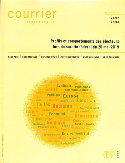 À quelques encablures des prochaines élections, ce Courrier hebdomadaire tire différents enseignements du scrutin fédéral du 26 mai 2019 grâce aux données d’une enquête post-électorale réalisée par la KU Leuven. Il examine la façon dont les caractéristiques socio-démographiques des électrices et des électeurs se sont associées à leurs orientations de valeurs politiques, culturelles et économiques, et la manière dont ces deux types de facteurs ont influencé leur comportement électoral. Quels éléments du profil personnel d’un électeur en termes de genre, d’âge, de niveau d’instruction, de statut professionnel, de conviction confessionnelle, d’appartenance à un syndicat ou d’affiliation mutuelliste façonnent un choix électoral déterminé ? Quelles positions des citoyens sur diverses questions politiques, culturelles et économiques majeures déterminent leur comportement de vote ? Comment la résultante des caractéristiques et des positions influence-t-elle le parti pour lequel l’électeur a choisi in fine de voter ? Et dans quelle mesure les électeurs ont-ils différé de part et d’autre de la frontière linguistique ? Sont aussi envisagées la question du moment où les électrices et les électeurs arrêtent leur vote – longtemps à l’avance, en cours de campagne ou le jour même de l’élection – et celle de l’attitude qui serait adoptée en cas d’abrogation de l’obligation de voter. Ce Courrier hebdomadaire étudie également la question du changement ou de la continuité du comportement électoral entre le scrutin fédéral de 2014 et celui de 2019. Sont ainsi estimés les flux d’électeurs entre les différents partis, soit francophones soit néerlandophones.