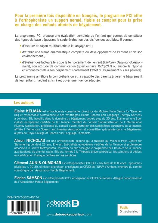 Pour la première fois disponible en français, le programme PCI offre à l’orthophoniste un support normé, fiable et complet pour la prise en charge des enfants atteints de bégaiement.