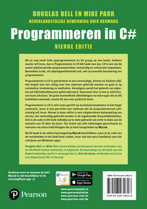 Programmeren in C# is met name gericht op eerstejaarsstudenten in het hoger onderwijs, maar is ook geschikt voor iedereen die de programmeertaal zelfstandig wil leren. Nieuw in deze editie is een uitgebreidere behandeling van structs, die veelvuldig gebruikt worden in de ingebouwde klassebibliotheken. Ook is de code in dit boek volledig up-to-date gebracht om recht te doen aan de evolutie van C# door de jaren. Ten slotte zijn alle oefeningen gereviseerd en voorzien van extra toelichtingen die je kunt terugvinden op MyLab.