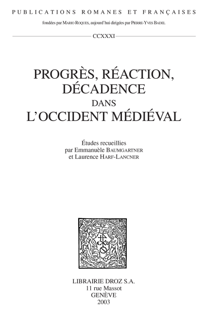 Le mot progrès n’existe pas au Moyen Age. Et le concept de progrès affleure à peine dans la pensée occidentale. Il est d’autant plus intéressant de réfléchir aujourd’hui sur ses premières manifestations, à un moment où le mythe du progrès, triomphant du XVIIIe au XXe siècle, est radicalement remis en question, et de s’interroger sur la variation des idéaux, des idéologies et de leurs champs d’application au cours des siècles.