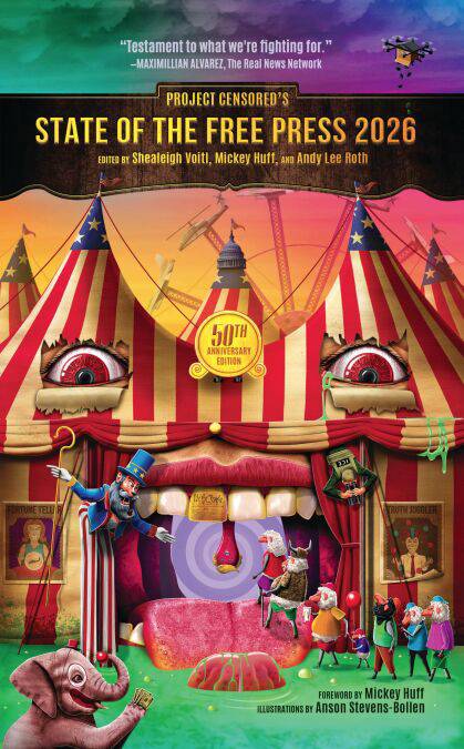 Project Censored's State of the Free Press 2026 includes: Project Censored director Mickey Huff's Foreword, where he writes about the history and continued relevance of the Project, and why media literacy and press freedoms are more important than ever, as it celebrates its 50th anniversary; editors Shealeigh Voitl, Andy Lee Roth, and Mickey Huff introduction to this year's book, discussing the siege on public knowledge in the age of Trump 2.0, envisioning an interconnected and imaginative resistance to censorship; a Déjà vu News chapter, which updates on previous year's top stories, including how a Monsanto "intelligence center" targeted journalists and activists, journalist Abby Martin's challenge to Georgia's BDS "gag law," and the Justice Department's secret Foreign Intelligence Surveillance Act (FISA) rules; a Junk Food News section that spans from Snow White and actress Gal Gadot, to Drake versus Kendrick and the gutting of public education, not to mention Elon Musk's chain saws, Cybertrucks, and creeping fascism, surveying the dubious reporting that's Making America Junky Again; John Collins of Weave News discusses the Long Shadow of News Abuse in the case of Elise Stefanik, Israel, and Antisemitism; Media Democracy in Action, featuring inspiring contributions by Ryan Grim of Drop Site News, Maya Schenwar and Lara Witt of the Movement Media Alliance, Joe Lauria of Consortium News, Lauren Harper with the Freedom of the Press Foundation, and Jodi Rave Spotted Bear of the Indigenous Media Freedom Alliance; and Shealeigh Voitl and Reagan Haynie's zine-style guide to infographics equips social media users with the tools to responsibly evaluate the content they see online and become empowered media makers.