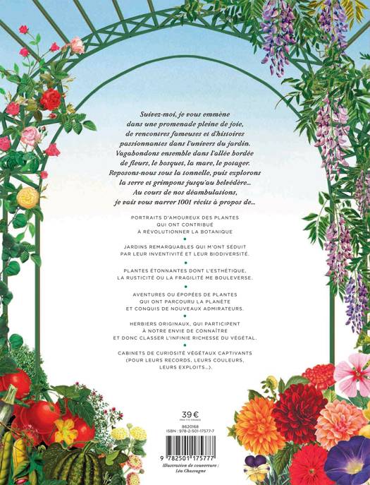 Suivez-moi, je vous emmène dans une promenade pleine de joie, de rencontres fameuses et d’histoires passionnantes dans l’univers du jardin. Vagabondons ensemble dans l’allée bordée de fleurs, le bosquet, la mare, le potager. Reposons-nous sous la tonnelle, puis explorons la serre et grimpons jusqu’au belvédère… Au cours de nos déambulations, je vais vous narrer 1001 récits à propos de…