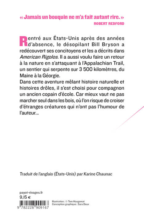 Dans cette aventure mêlant histoire naturelle et histoires drôles, il s'est choisi pour compagnon un ancien copain d'école. Car mieux vaut ne pas marcher seul dans les bois, où l'on risque de croiser d'étranges créatures qui n'ont pas l'humour de l'auteur...