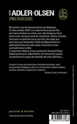 Bornholm, une île danoise de la mer Baltique, fin des années 1990. Le cadavre d'une jeune fille est retrouvé dans un arbre, son vélo broyé au bord de la route. Aucune trace du chauffard : affaire classée. Sauf pour un policier local, qui finit dix-sept ans plus tard par demander l'aide du Département V, spécialisé dans les cold cases. Avant de se tirer une balle dans la tête.