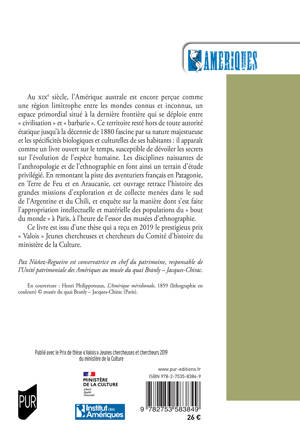 Au XIXe siècle, l'Amérique australe est encore perçue comme une région limitrophe entre les mondes connus et inconnus, un espace primordial situé à la dernière frontière qui se déploie entre « civilisation » et « barbarie ». Ce territoire resté hors de toute autorité étatique jusqu'à la décennie de 1880 fascine par sa nature majestueuse et les spécificités biologiques et culturelles de ses habitants : il apparaît comme un livre ouvert sur le temps, susceptible de dévoiler les secrets sur l'évolution de l'espèce humaine. Les disciplines naissantes de l'anthropologie et de l'ethnographie en font ainsi un terrain d'étude privilégié. En remontant la piste des aventuriers français en Patagonie, en Terre de Feu et en Araucanie, cet ouvrage retrace l'histoire des grandes missions d'exploration et de collecte menées dans le sud de l'Argentine et du Chili, et enquête sur la manière dont s'est faite l'appropriation intellectuelle et matérielle des populations du « bout du monde » à Paris, à l'heure de l'essor des musées d'ethnographie.