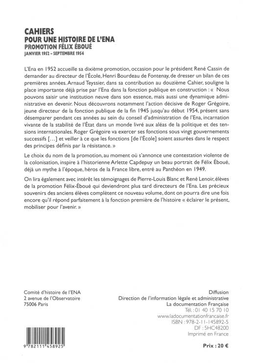 L'Ena en 1952 accueille sa dixième promotion, occasion pour le président René Cassin de demander au directeur de l'École, Henri Bourdeau de Fontenay, de dresser un bilan de ces premières années. Arnaud Teyssier, dans sa contribution au douzième Cahier, souligne la place importante déjà prise par l'Ena dans la fonction publique en construction : « Nous pouvons saisir une institution neuve dans son essence, mais aussi une dynamique administrative en devenir. Nous découvrons notamment l'action décisive de Roger Grégoire, jeune directeur de la fonction publique de la fin 1945 jusqu'au début 1954, présent sans désemparer pendant ces années au sein du conseil d'administration de l'Ena, incarnation vivante de la stabilité de l'État dans un monde livré aux aléas de la politique et des tensions internationales. Roger Grégoire va exercer ses fonctions sous vingt gouvernements successifs [...] et veiller à ce que les fonctions [de l'École] soient assurées dans le respect des principes définis par la résistance. »
